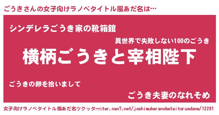 | 男性向けラノベタイトル風あだ名 | 『ごうきに滅ぼされるだけの簡単なお仕事です』 |