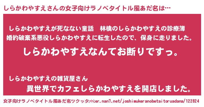 | 肩書あだ名 | 『しらかわやすえ総統』 |