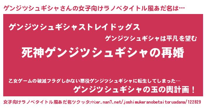 | 男性向けラノベタイトル風あだ名 | 『ノーゲーム・ノーゲンジツシュギシャ』 |