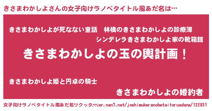 | 男性向けラノベタイトル風あだ名 | 『転生したらきさまわかしよだった件』 |