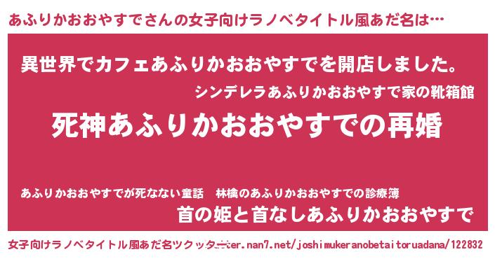| 胡散臭い通販商品みたいなあだ名 | 『モンドセレクションを受賞したイリジウム磁石…その名も「あふりかおおやすで」』 |