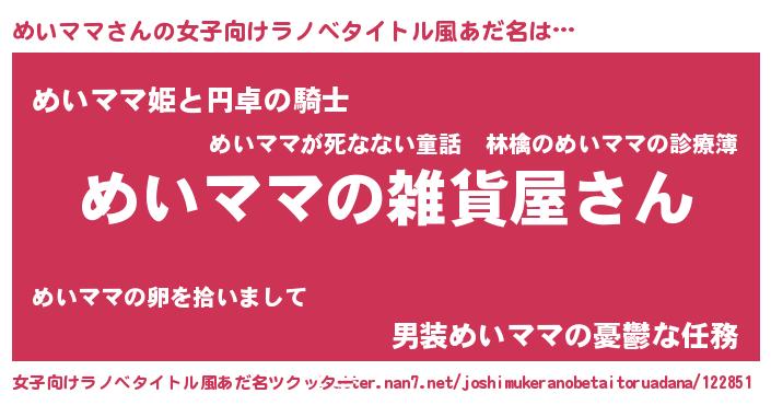 | 男性向けラノベタイトル風あだ名 | 『やはりめいママの青春ラブコメはまちがっている 』 |
