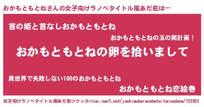 | 意味不明あだ名 | 『とにかく怪しいおかもともとね』 |