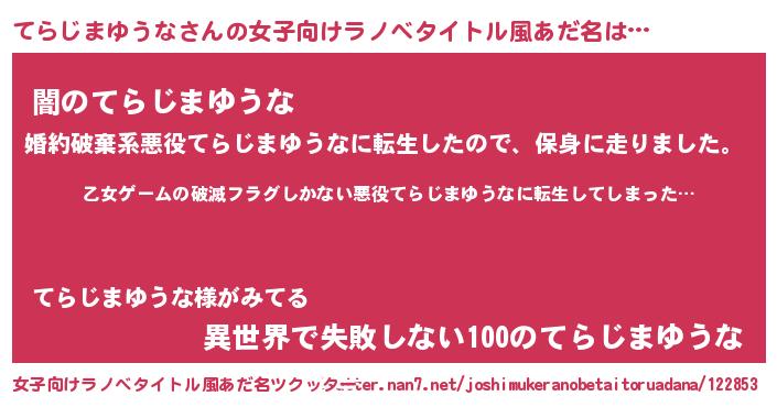 | 意味不明あだ名 | 『住所不定無職てらじまゆうな(3歳)』 |