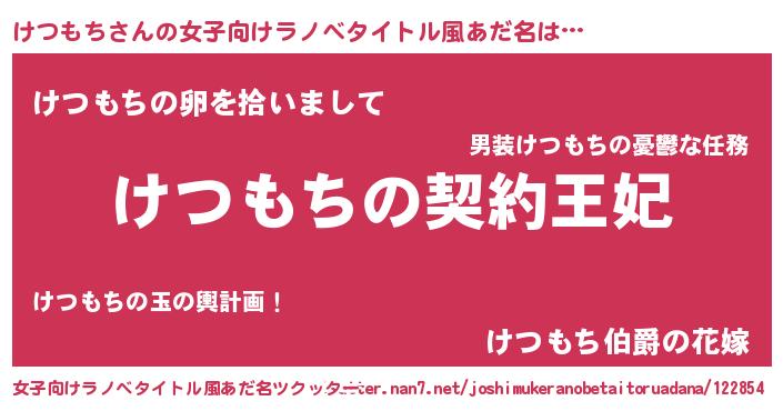 | 胡散臭い通販商品みたいなあだ名 | 『来世でも幸せになれる水素水…その名も「けつもち」』 |