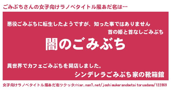 | 男性向けラノベタイトル風あだ名 | 『Re:ごみぶちから始める異世界生活』 |