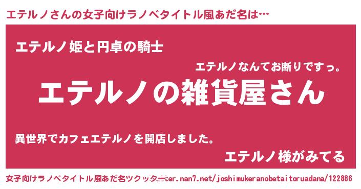 | 男性向けラノベタイトル風あだ名 | 『やはりエテルノの青春ラブコメはまちがっている 』 |