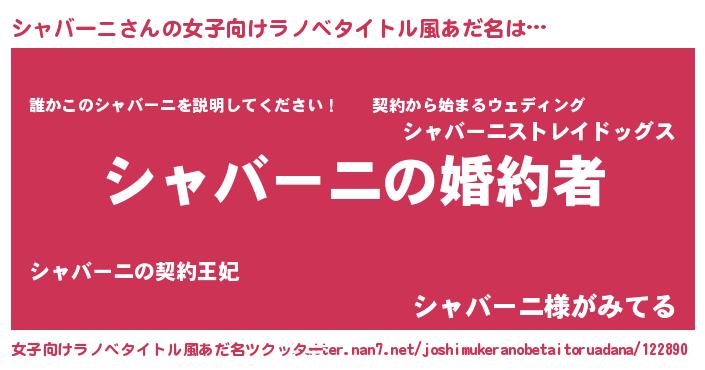 | 胡散臭い通販商品みたいなあだ名 | 『運命の人と巡り会える高級そうな壺…その名も「シャバーニ」』 |