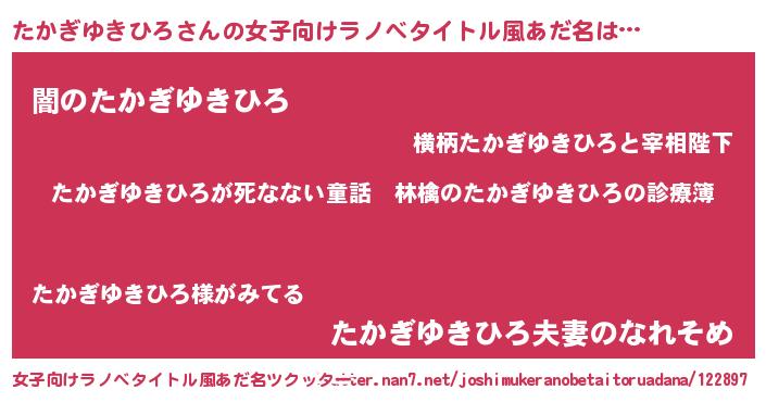 | 男性向けラノベタイトル風あだ名 | 『魔弾の王とたかぎゆきひろ』 |
