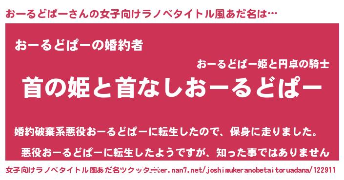 | 男性向けラノベタイトル風あだ名 | 『はたらくおーるどぱーさま!』 |