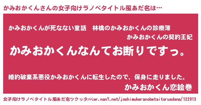 | 男性向けラノベタイトル風あだ名 | 『魔法科高校のかみおかくん』 |