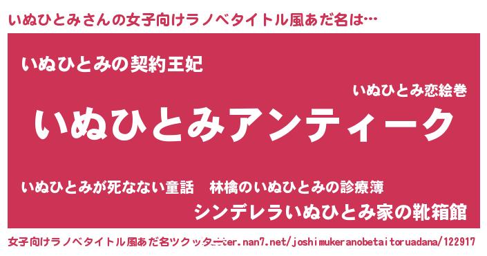 | 胡散臭い通販商品みたいなあだ名 | 『テレビで話題の高麗人参…その名も「いぬひとみ」』 |