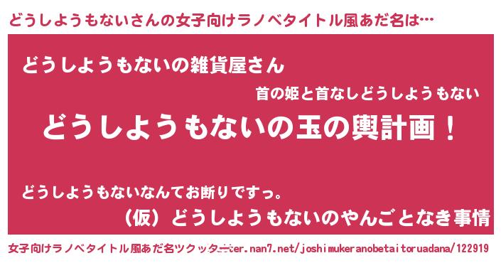 | 男性向けラノベタイトル風あだ名 | 『転生したらどうしようもないだった件』 |