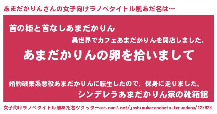 | 男性向けラノベタイトル風あだ名 | 『ダンジョンにあまだかりんを求めるのは間違っているだろうか』 |