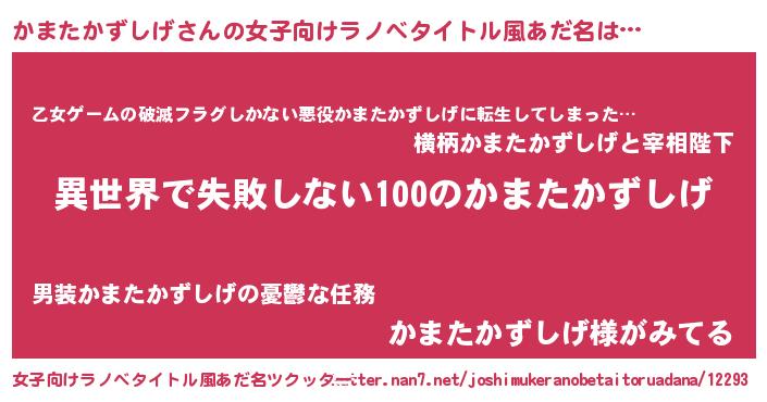 | 男性向けラノベタイトル風あだ名 | 『かまたかずしげという概念が存在しない退屈な世界 』 |