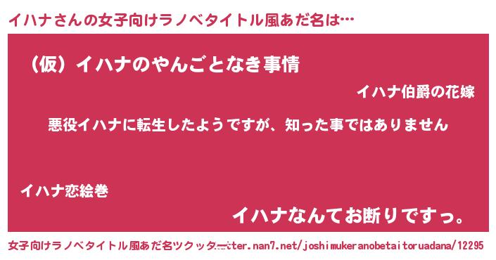 | 胡散臭い通販商品みたいなあだ名 | 『あなたにだけ特別に提供する100年もののヴィンテージワイン…その名も「イハナ」』 |