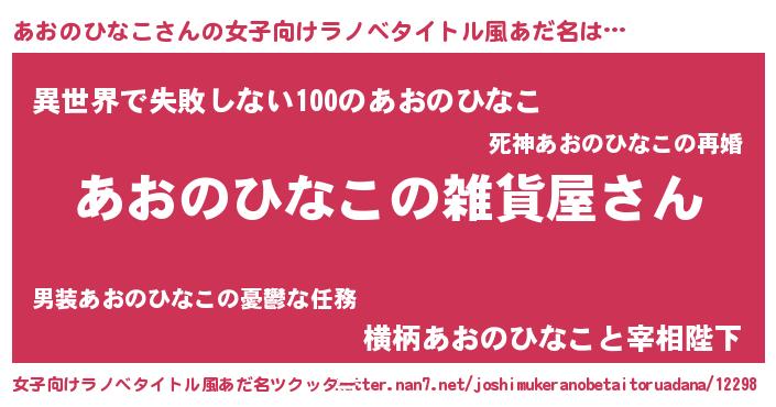 | 男性向けラノベタイトル風あだ名 | 『やはりあおのひなこの青春ラブコメはまちがっている 』 |