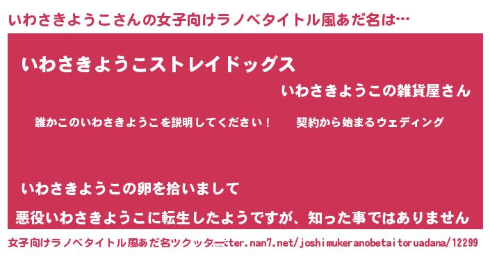 | 男性向けラノベタイトル風あだ名 | 『イワサキヨウコアートオンライン』 |