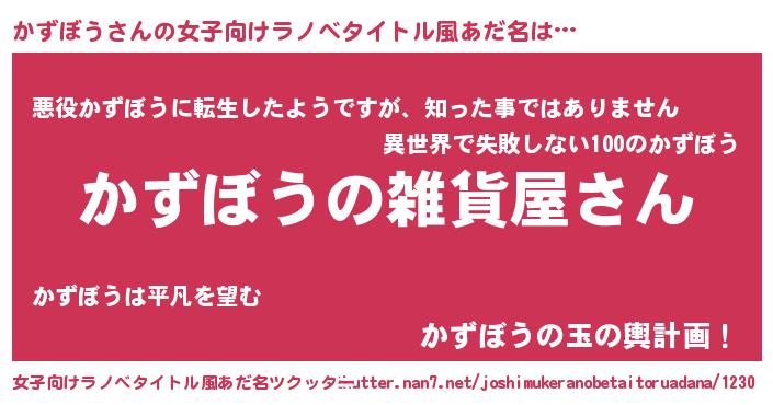 | 男性向けラノベタイトル風あだ名 | 『やはりかずぼうの青春ラブコメはまちがっている 』 |