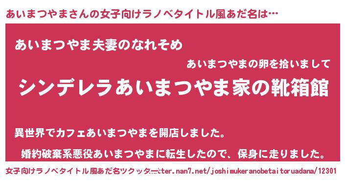 | 男性向けラノベタイトル風あだ名 | 『冴えないあいまつやまの育てかた』 |