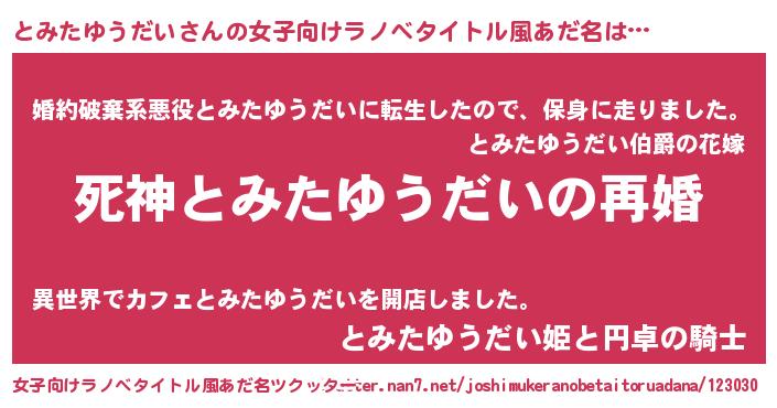 | 男性向けラノベタイトル風あだ名 | 『ノーゲーム・ノートミタユウダイ』 |