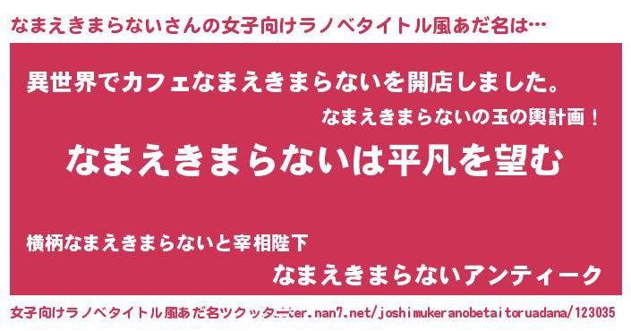 | 男性向けラノベタイトル風あだ名 | 『ダンジョンになまえきまらないを求めるのは間違っているだろうか』 |