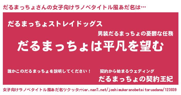 | 男性向けラノベタイトル風あだ名 | 『ダンジョンにだるまっちょを求めるのは間違っているだろうか』 |