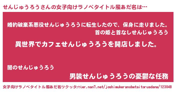 | 男性向けラノベタイトル風あだ名 | 『誰もが恐れるあのせんじゅうろうが、ぼくの専属メイドになるようです。』 |