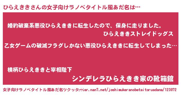 | ヘコむあだ名 | 『ひらえきき(小並感)』『ひらにゅー』 |