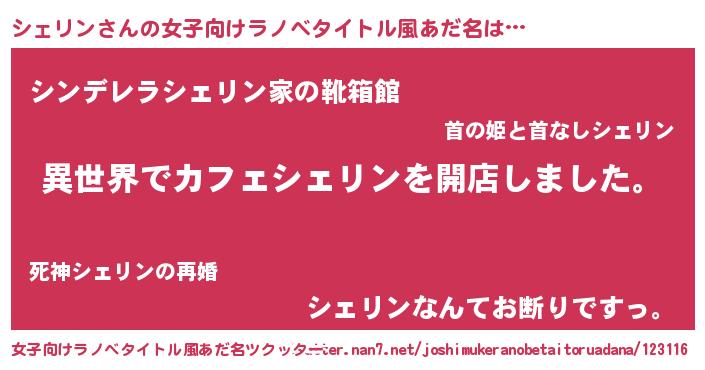 | 意味不明あだ名 | 『永久保存シェリン』『自称シェリン』 |