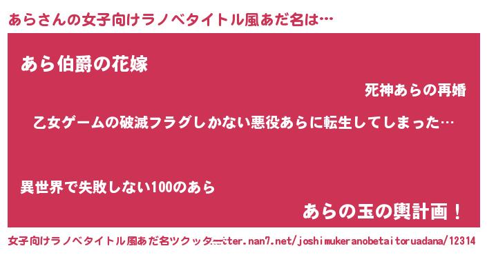 | 意味不明あだ名 | 『住所不定無職あら(62歳)』『永久保存あら』 |