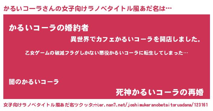 | 胡散臭い通販商品みたいなあだ名 | 『世界中を虜にした100年もののヴィンテージワイン…その名も「かるいコーラ」』 |