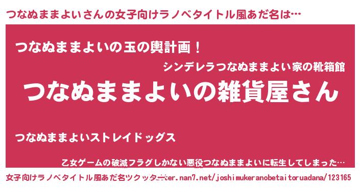 | ファンタジー風あだ名 | 『エターナルツナヌママヨイー』 |