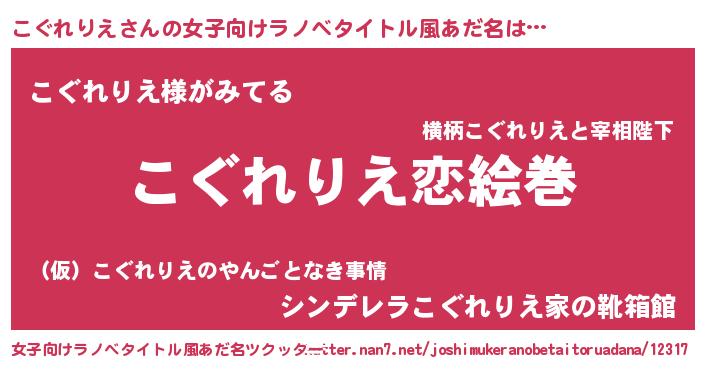 | 男性向けラノベタイトル風あだ名 | 『ノーゲーム・ノーコグレリエ』 |