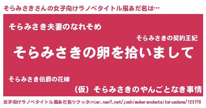 | 胡散臭い通販商品みたいなあだ名 | 『伝統あるサプリメント…その名も「そらみさき」』 |