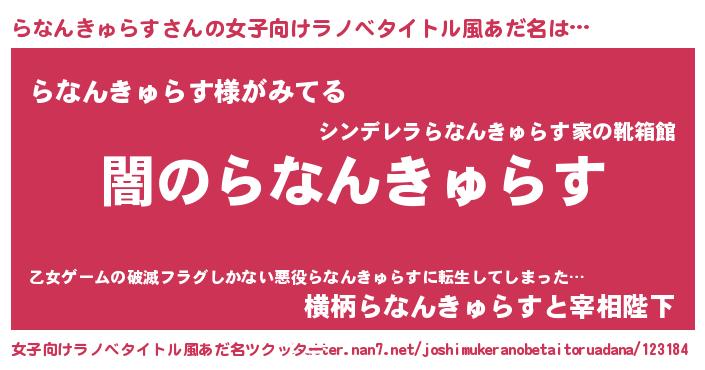 | 意味不明あだ名 | 『自称らなんきゅらす』 |