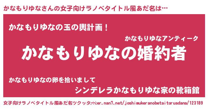 | 恥ずかしいあだ名 | 『かなっちょ』『カナモリユナデラックス』 |