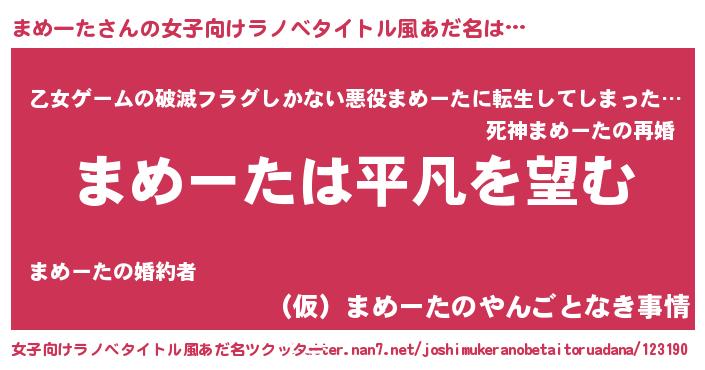 | 男性向けラノベタイトル風あだ名 | 『ダンジョンにまめーたを求めるのは間違っているだろうか』 |