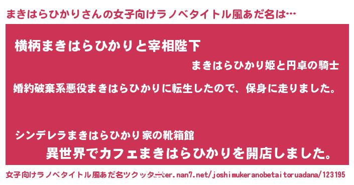 | 胡散臭い通販商品みたいなあだ名 | 『絶対に幸福をもたらす水素水…その名も「まきはらひかり」』 |