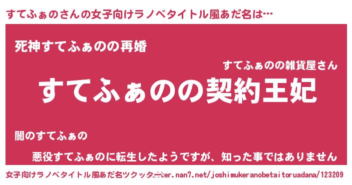 | 男性向けラノベタイトル風あだ名 | 『誰もが恐れるあのすてふぁのが、ぼくの専属メイドになるようです。』 |