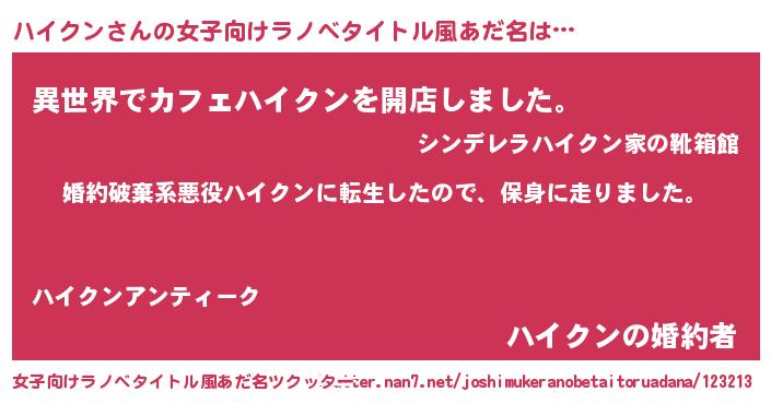 | 男性向けラノベタイトル風あだ名 | 『ハイクンスレイヤー』 |