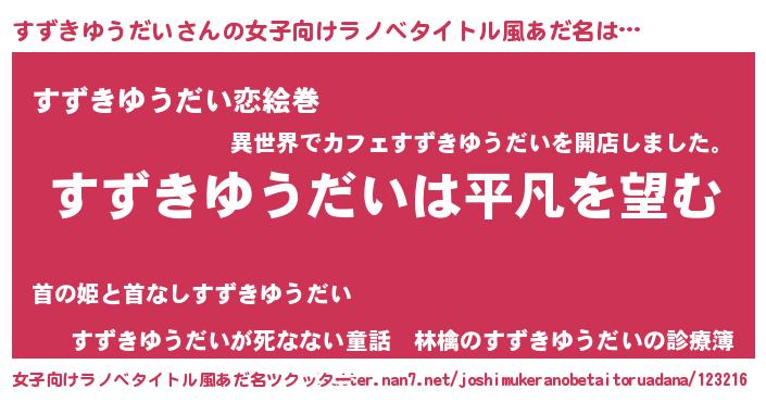| ヘコむあだ名 | 『すずっ子』『すずきゆうだい(笑)』 |