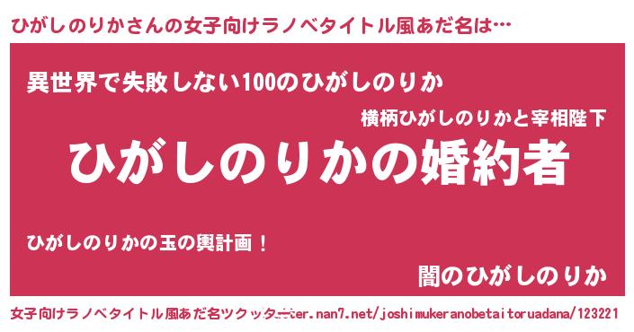 | ファンタジー風あだ名 | 『エターナルヒガシノリカー』 |