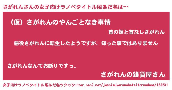 | 男性向けラノベタイトル風あだ名 | 『この素晴らしい世界にさがれんを!』 |