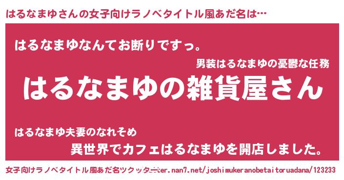 | 男性向けラノベタイトル風あだ名 | 『やはりはるなまゆの青春ラブコメはまちがっている 』 |