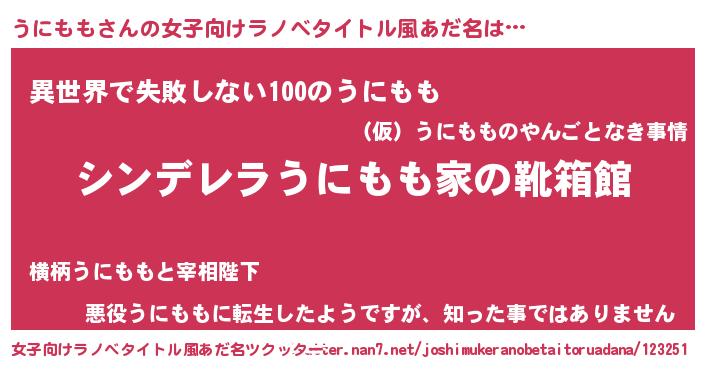 | 男性向けラノベタイトル風あだ名 | 『緋弾のウニモモ』『うにももの憂鬱』 |