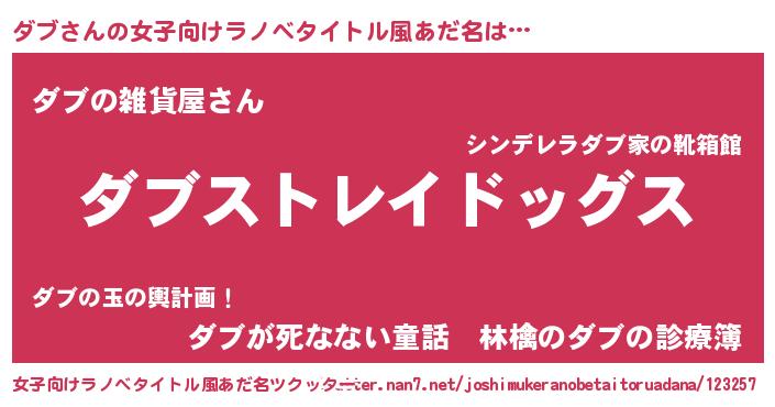 | 男性向けラノベタイトル風あだ名 | 『Re:ダブから始める異世界生活』 |