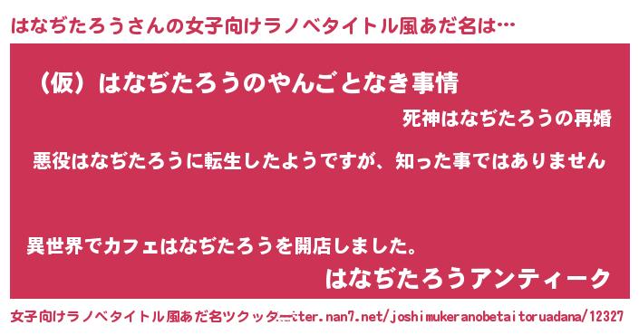 | 意味不明あだ名 | 『住所不定無職はなぢたろう(47歳)』 |