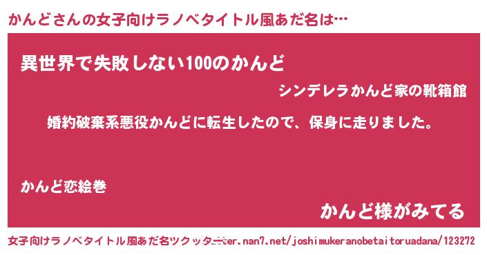 | 胡散臭い通販商品みたいなあだ名 | 『絶対に幸福をもたらす健康食品…その名も「かんど」』 |