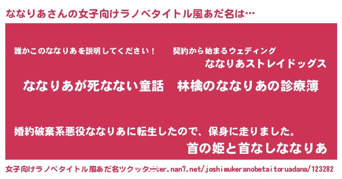 | ヒーロー風カッコイイあだ名 | 『仮面ナナダー』『スーパーナナリア』 |